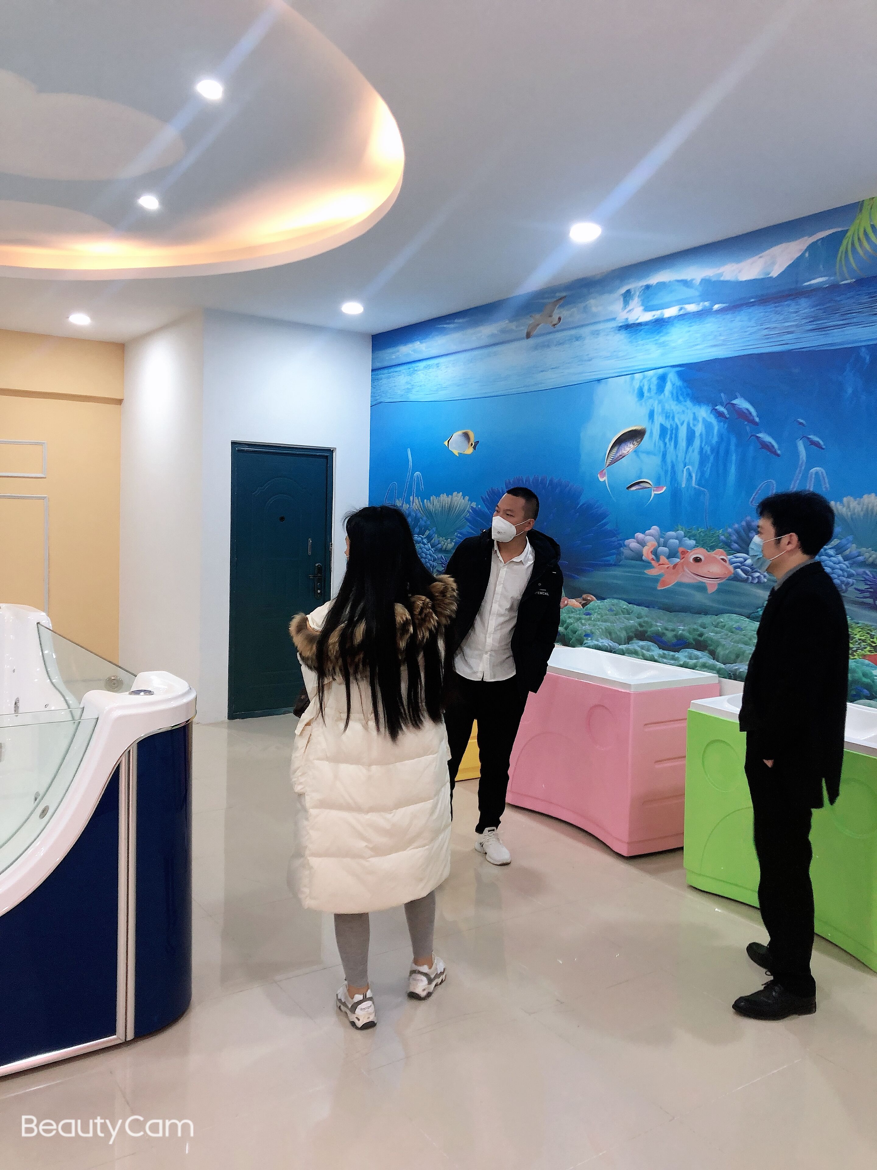 這是美好的邂逅。雖然大家都帶著口罩,在產品賣場、遊泳館、產後康複等展區參觀時都保持著適當的安全距離,在食堂用餐時也是相互隔桌相望,但愉悅的心情和火焰般的熱情卻在眉目之間傳遞。